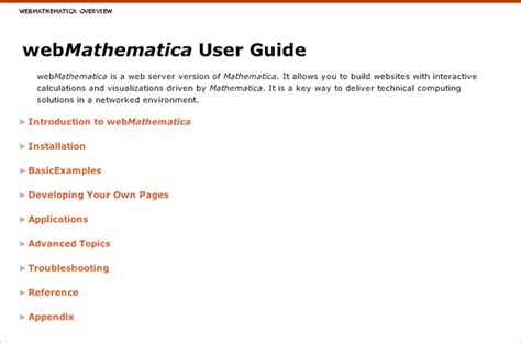 Webmathematica User Guide. Learn how to set up webmathematica and use it to build websites with interactive calculations and visualizations driven by mathematica. It allows you to build websites with interactive calculations and visualizations driven by.