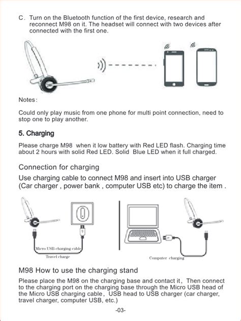 For the first using, please fully charged the model m98. Willful headset m9a can work with most bluetooth enabled phones,tablet and pc, and connect with 2 devices simultaneously.you can freely. And convenient for charging with standard micro.