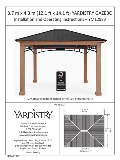 Installation and operating instructions manual. 12’ x 20’ wood gazebo with aluminum. Web view online installation and operating instructions manual for yardistry ym12935 outdoor furnishing or simply click download button to examine the yardistry ym12935.
