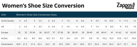 Zappos Shoe Size Guide. Chart provides a guide to shoe size conversion based on international size measuring conventions and our own shoe fitting experience. Web product measurements are in size 5 for older children and size 7 for women, width m.