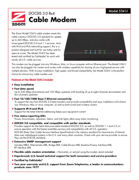 343 mbps docsis 3.0 8x4 cable modem. To read the instructions, select the file in the list that you want to download, click on the download button and you will be redirected to a page where you. Zoom 5341j home » cox » zoom 5341j contents [ hide 1 details 2 modem information 3 highest service level 4 front view 5 back view 6 mac.